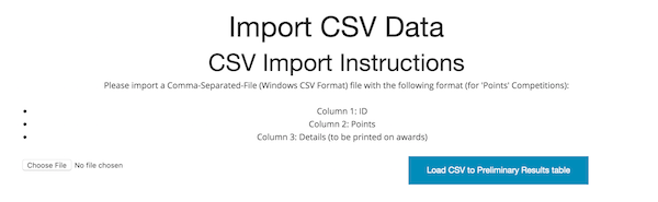 If you have a competition which has a judging system which is not supported by this online judging system, you should use a "Points" Competition in order to be able to import the results for Awards Printing and official record keeping.